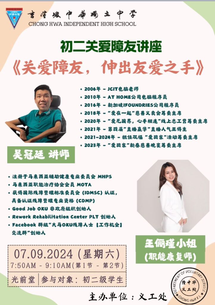 Chong Hwa Independent High School Talk 初二关爱障友讲座《伸出友爱之手》