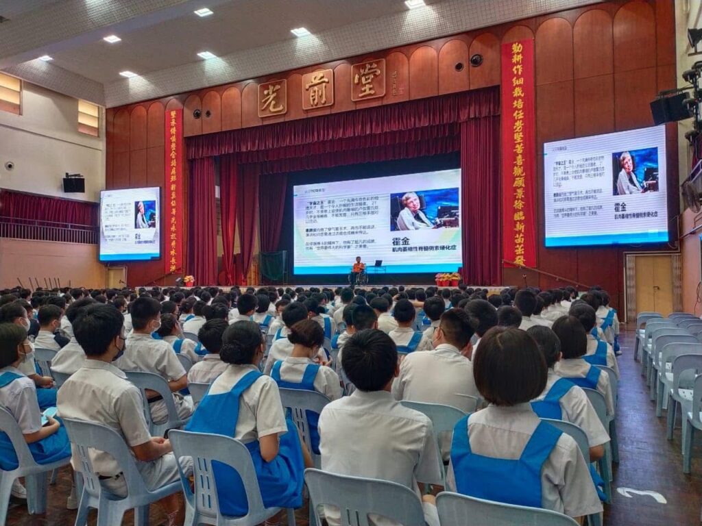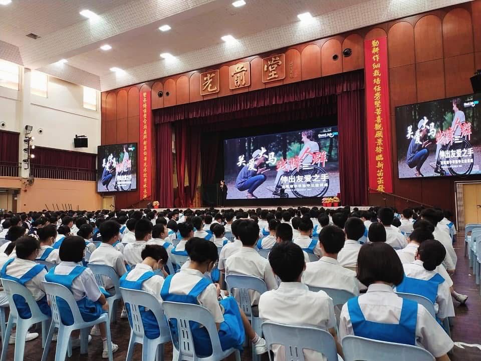 In collaboration with Dual Blessing, we conducted a disability awareness talk at Chong Hwa Independent High School, titled 初二关爱障友讲座《伸出友爱之手》. The session was attended by approximately 800 students.